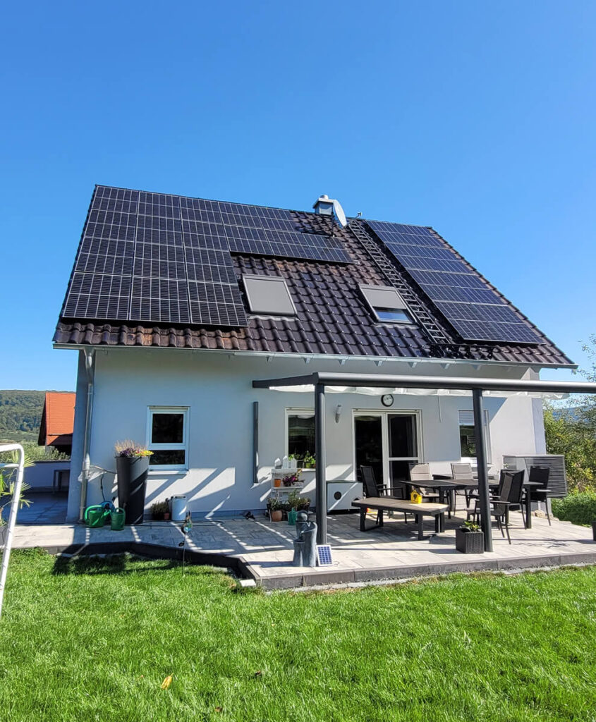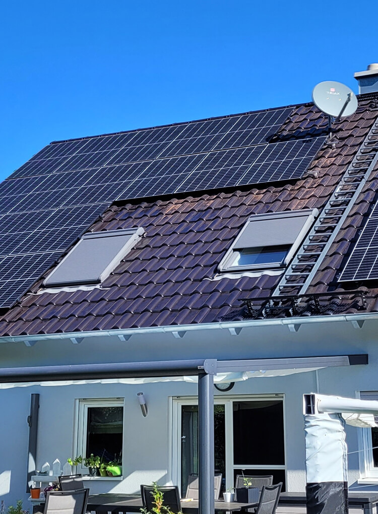 Jede Photovoltaikanlage wird von uns individuell geplant und exakt auf Ihr Zuhause abgestimmt. Dabei setzen wir ausschließlich auf hochwertige, geprüfte Komponenten, die technisch perfekt miteinander harmonieren. So stellen wir sicher, dass Ihre Anlage nicht nur heute effizient arbeitet, sondern auch langfristig zuverlässig und leistungsstark bleibt.